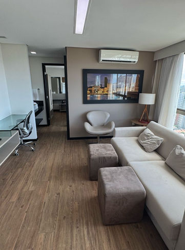 Apto mobiliado | 40 m² | 01 Quarto | WC Social | Sala para 02 Ambientes ( estar, jantar) | Cozinha | Area de Serviço | Ar-Condicionado Split | 01 Vaga de garagem rotativa | Apto mobiliado | Andar Alto